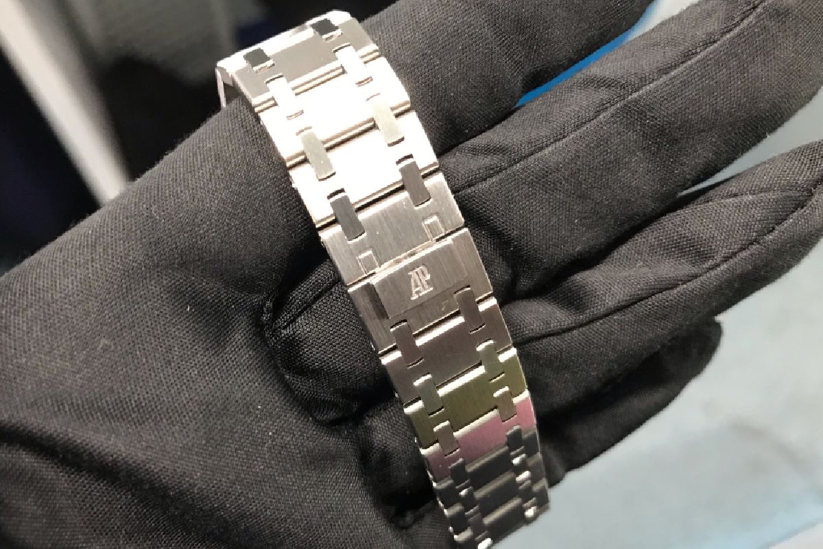 最近のIPシリーズはブレスレットのリンクピースも鏡面プラチナ仕様ですが、