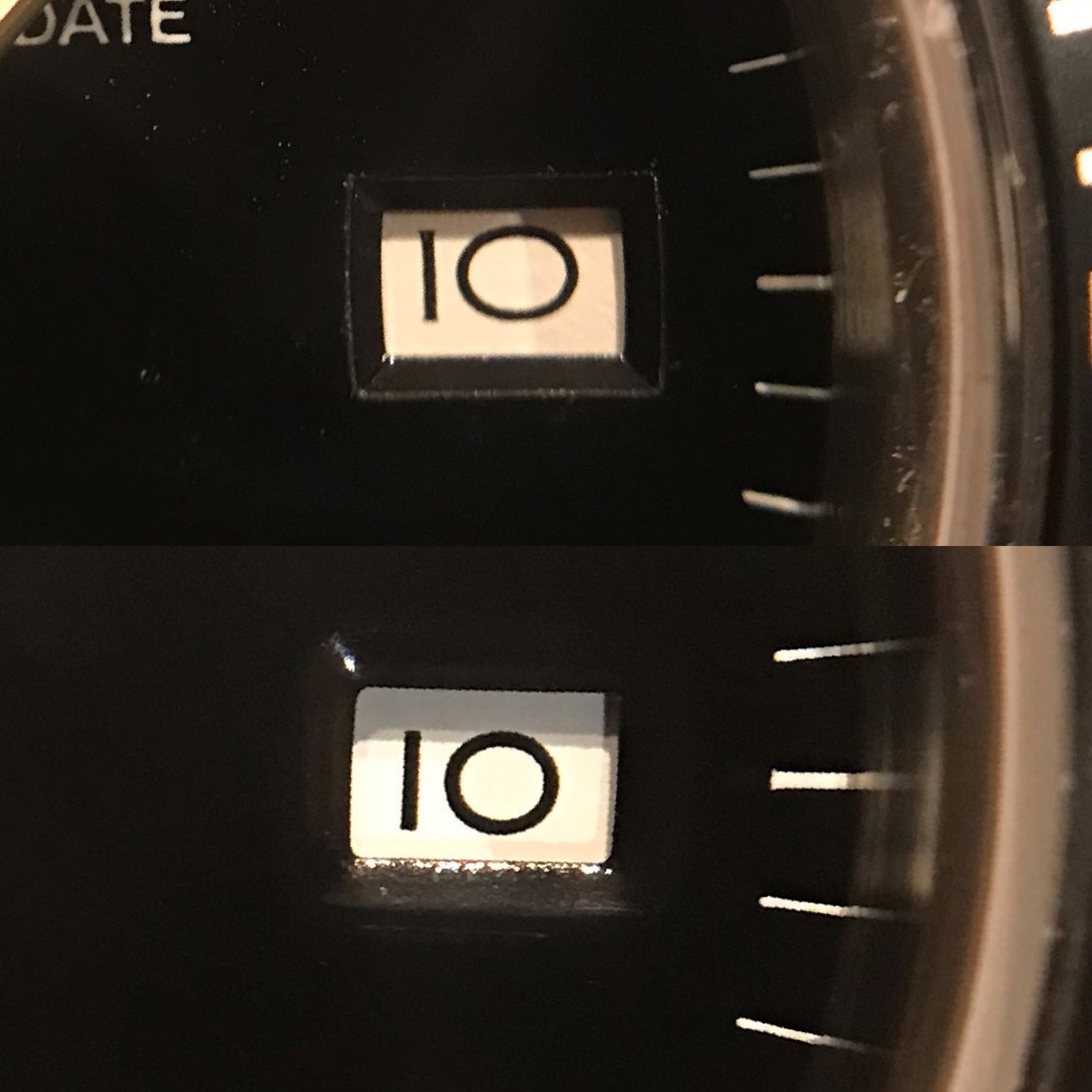 6時位置の表記も書体に違いがありますが、
