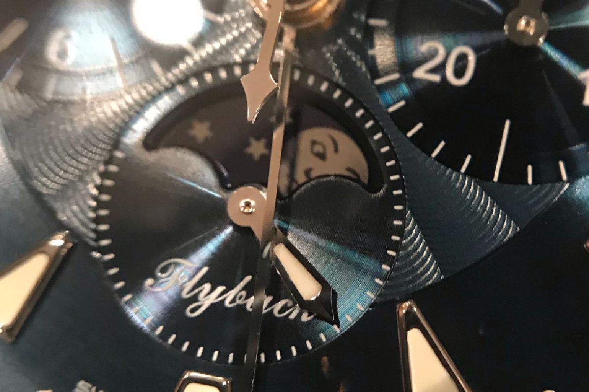 月は1時位置、ムーンフェイズは5時位置にある