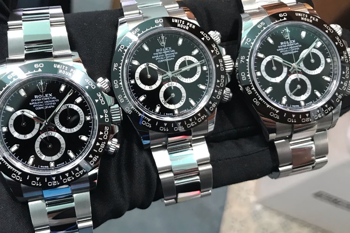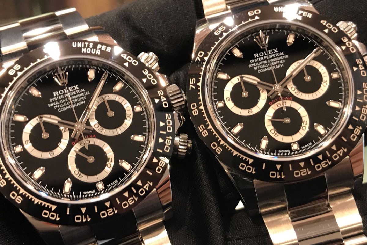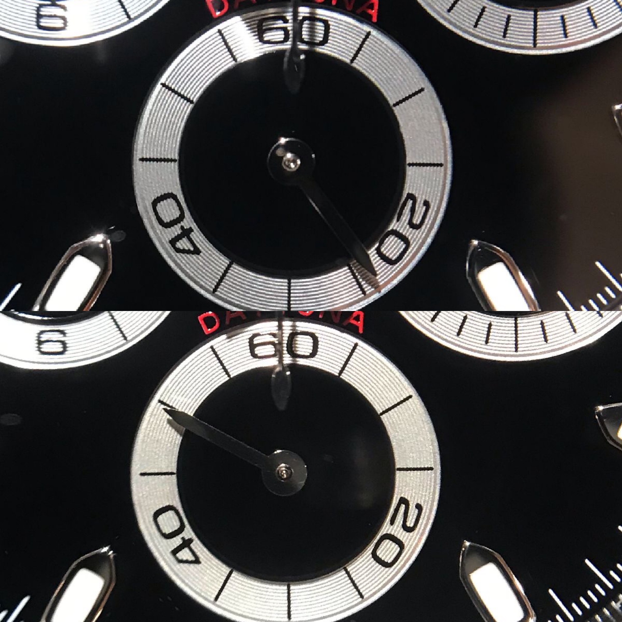 ぱっと見は全くもって同じ現行デイトナの黒文字盤になりますが、