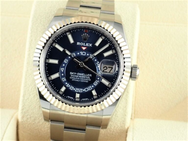 「ロレックス史上最高の複雑機構」と言われているスカイドゥエラーはデザイン面だけではなく、機能性も最高峰のモデルになります。アニュアルカレンダーとデュアルタイム表示が搭載されたロレックス初となるセミ・コンプリケーションモデルとしても知られております。また24時間表示ディスクにより第二時刻を示す、GMT機能とは一味違った革新的な機構が備わっています。