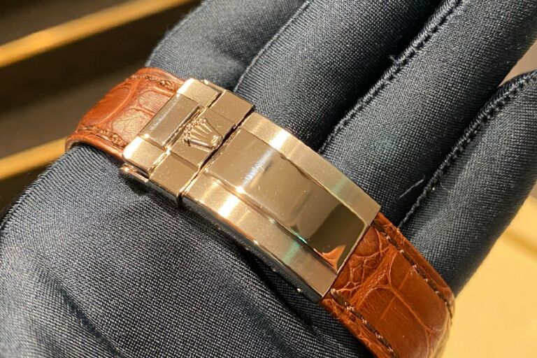 純正革ベルトはショートサイズのブラウンアリゲーターになります。