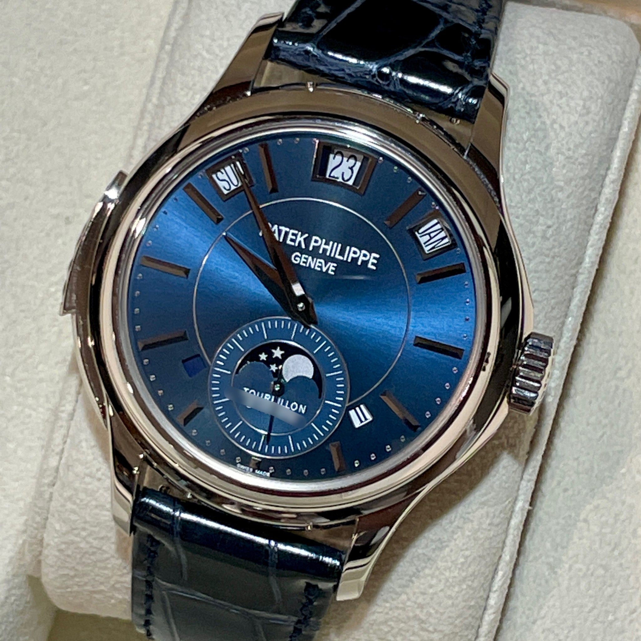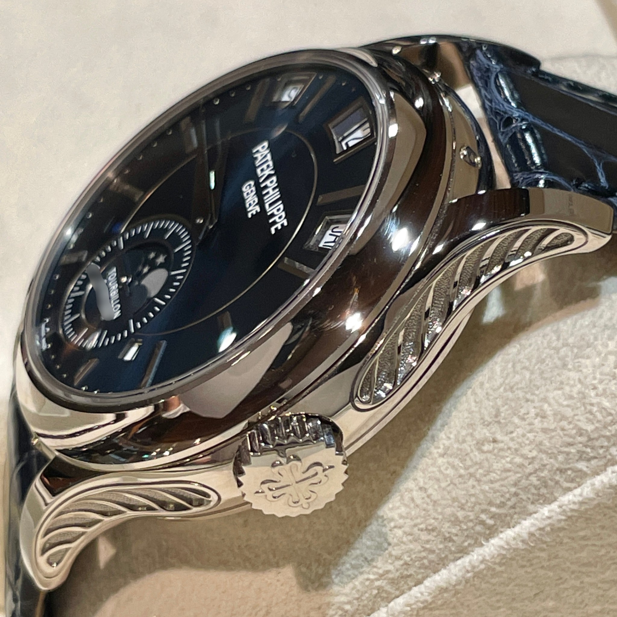 公式サイトによると、ミニット・リピーター、トゥールビヨン、瞬時日送り式窓表示永久カレンダーを搭載した【パテックフィリップ】の現行コレクション唯一の時計とのことです。