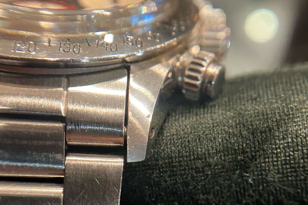 この手巻きデイトナ独特のラグシェイプは