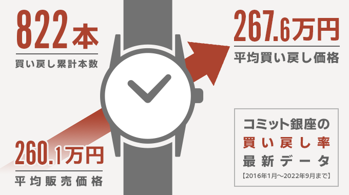 コミット銀座をオープンした2016年1月~2022年9月までにご購入頂いた時計のうち、当店に再度ご売却いただいた総データが下記です。