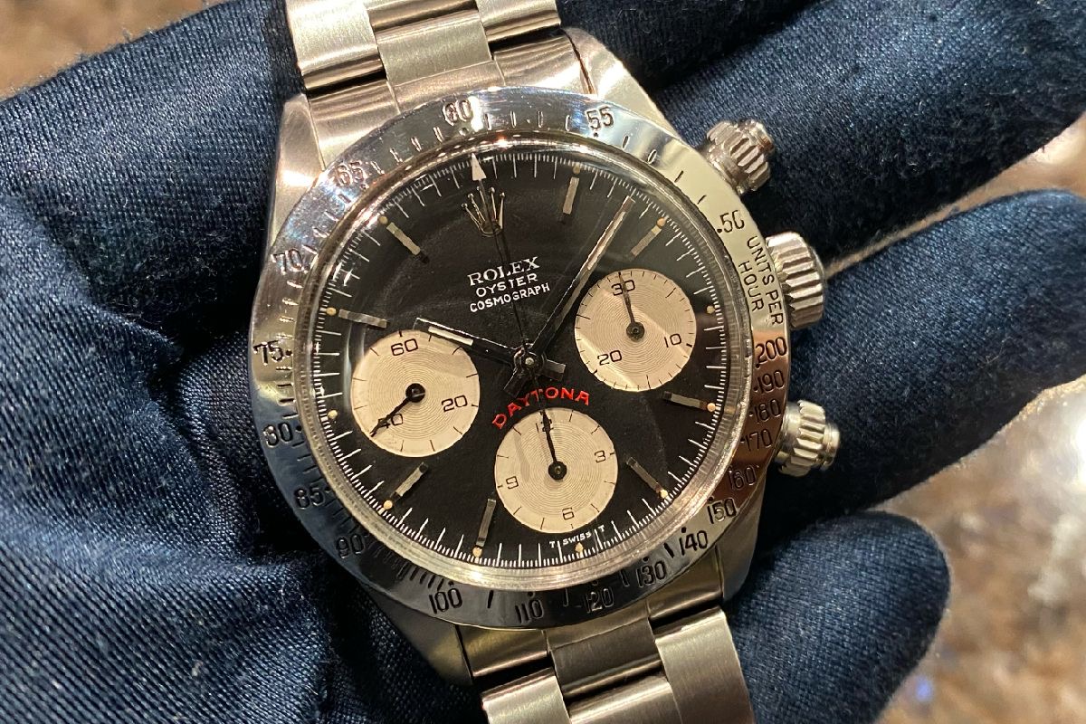 手巻きデイトナの最終モデルで、キャリバーは毎時21,600振動の”Cal.727”を搭載。