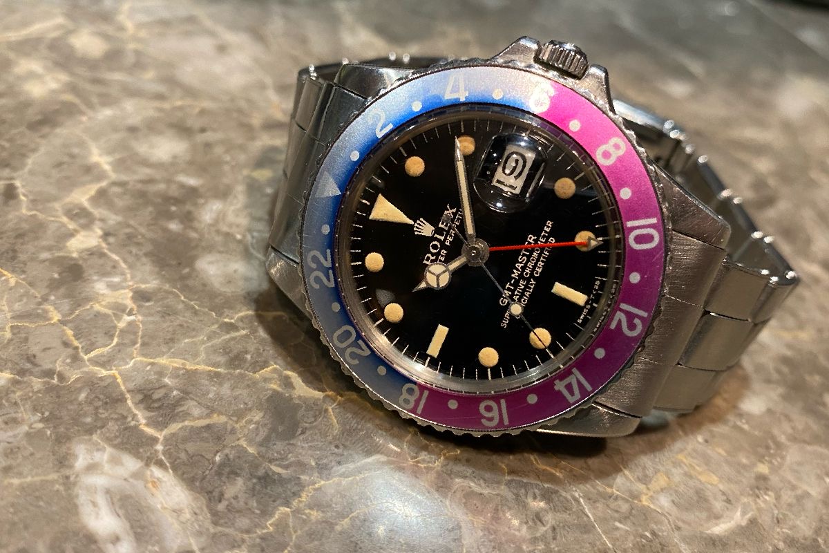 綺麗に褪色したフクシアインサートと漆黒ミラーダイヤルが絶妙に相まった