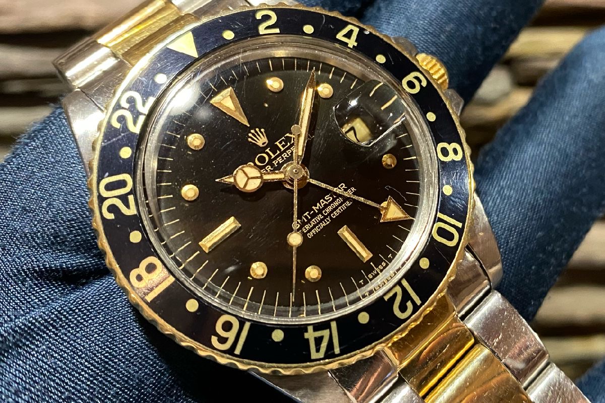 本日はヴィンテージGMTマスターの黒ツボダイヤルでございます!!