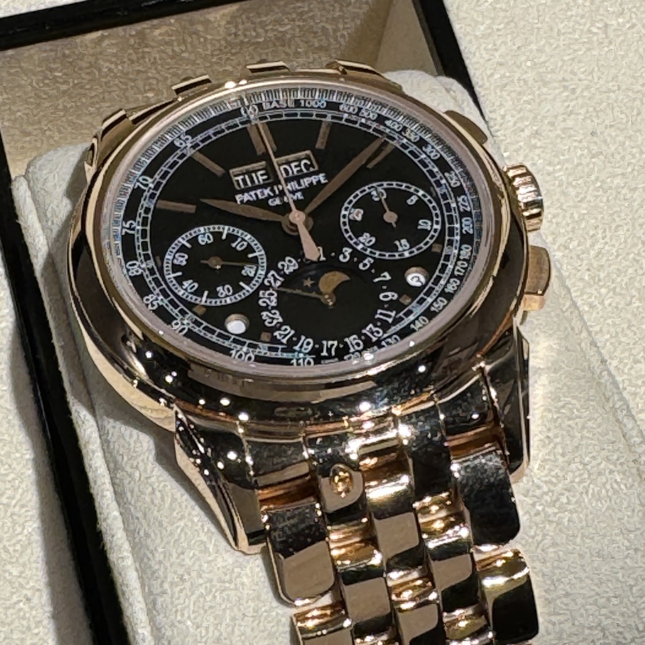 18KRG(ローズゴールド)製のケース、ブレスレットに、精悍な印象のブラック文字盤を備えて、2018年に発表された「Ref.5270/1R-001」。