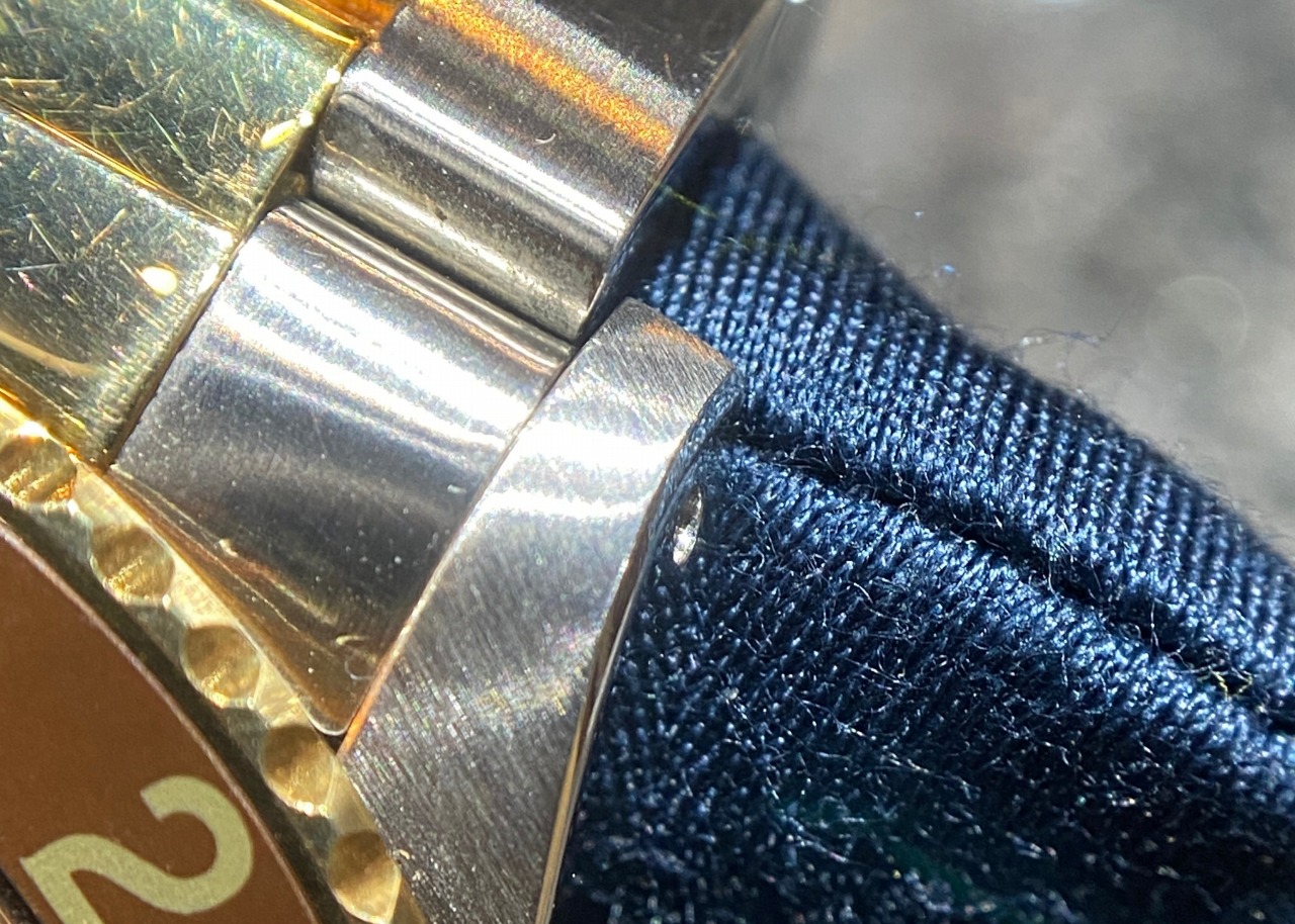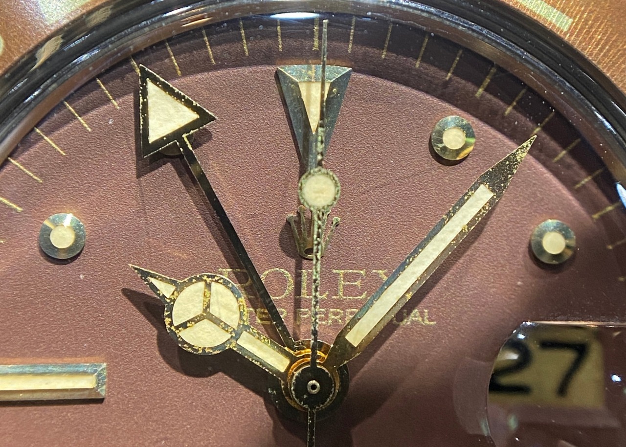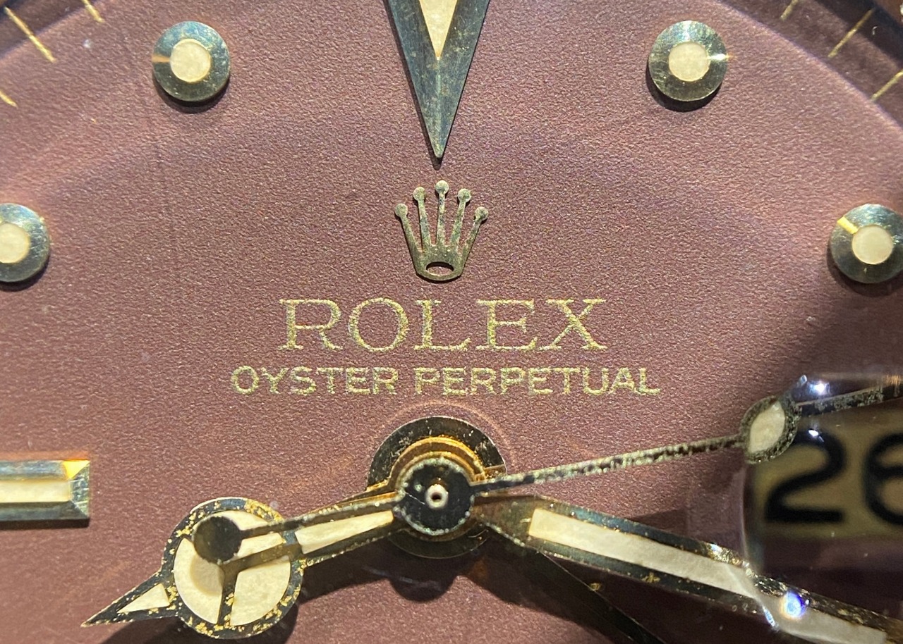 18Kゴールドなのに対し、 Ref.16753ルートビアは王冠マークはプリントされております。 ダイヤルもRef.1675/3はマットダイヤル(一部最終ダイヤル除く)、 Ref.16753は艶ありダイヤルになります。