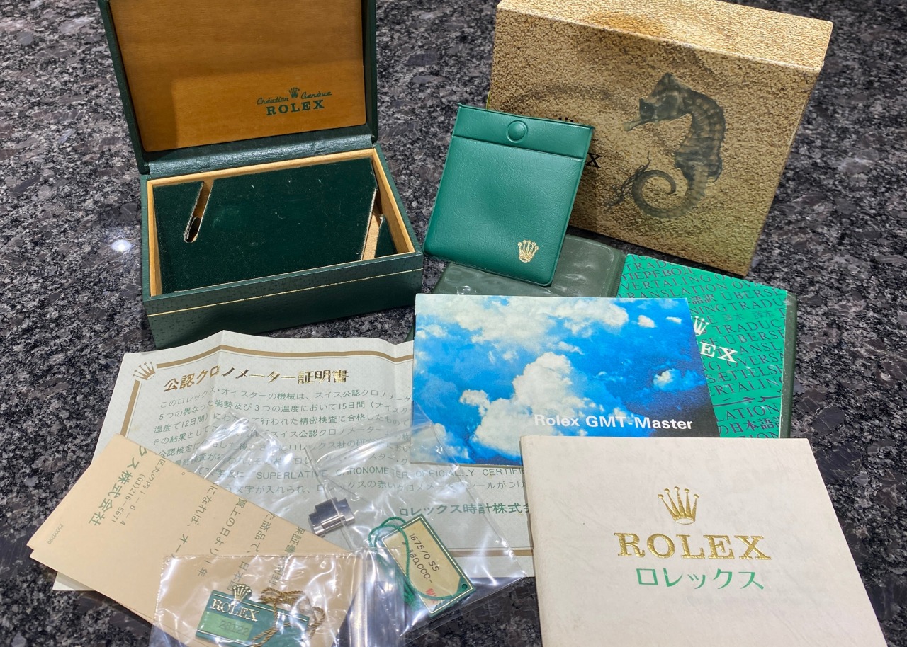 クロノメーター証明書、GMT冊子、パスケース、余りコマと揃っております。