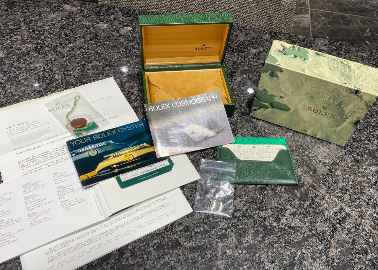 付属品は箱・国際サービス保証書(2014)・クロノメータータグ・