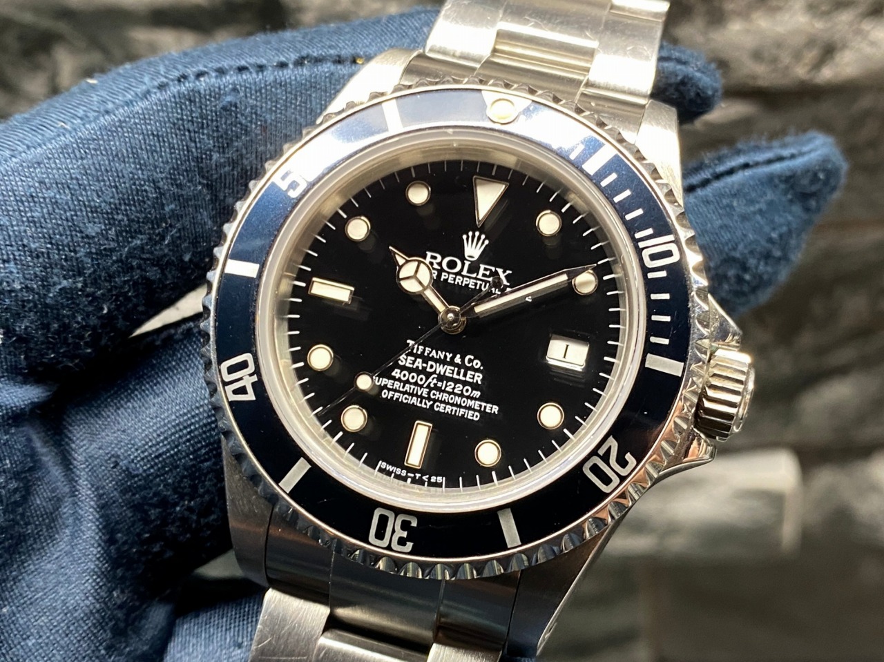 ネイビーインサートが魅力!ティファニー ダブルネーム!!ロレックス シードゥエラー 16600 X5番 良個体 先端ドット オールトリチウムのご紹介!!