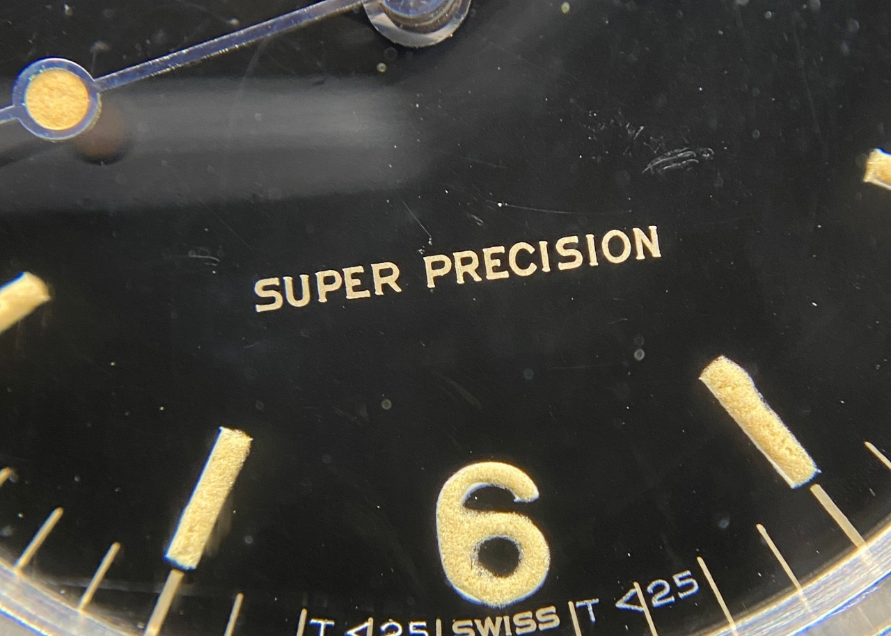 ノンクロノムーブ搭載の為、ダイヤルの6時位置には正確を意味する”SUPER PRECISION”の表記が入っております!