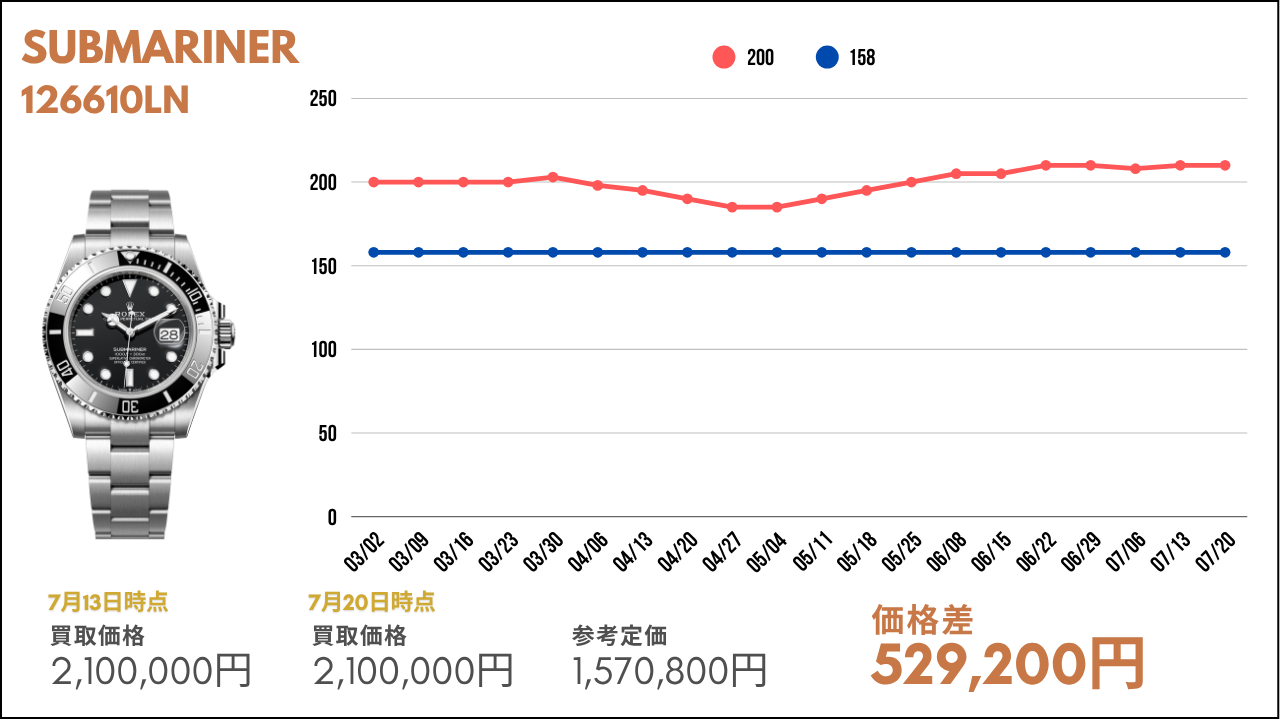 高級腕時計の象徴として君臨する【ロレックス】。その市場価値が毎週どのように変動しているかを知ることは、時計愛好家や投資家にとって非常に重要な要素の1つです。本コラムでは、ロレックスのプロフェッショナルモデルを始めとする主要モデルの相場について、その定価と毎週の買取金額を比較し、最新の市場トレンドをお届けします。ぜひ売買のご参考にしていただければと思います。また、毎週こちらの内容を配信していきますので、欠かさずチェックしてください!