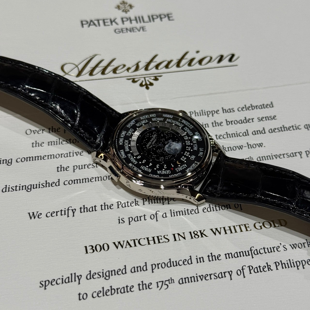 【パテックフィリップ】創業175周年を記念して2014年に登場した、世界1,300本限定の『ワールドタイム ムーンフェイズ』「Ref.5575G-001」。