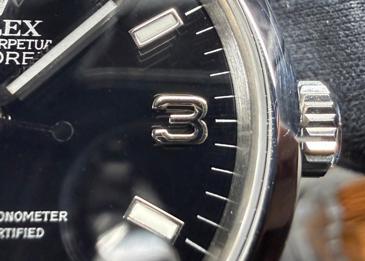 3・6・9インデックスにホワイトではなくブラックのラインが入るダイヤルですね。